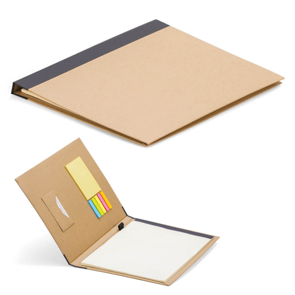 – Geri dönüşümlü toplantı bloknotu – Renkli yapışkanlı notluk – Kartvizit bölmesi – 23 x 31 cm