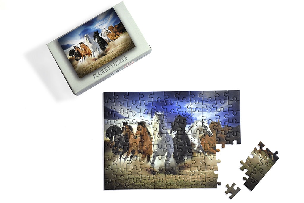 Her yapboz parçası, hasara karşı korumak için mat bir laminasyonla kaplanmıştır.