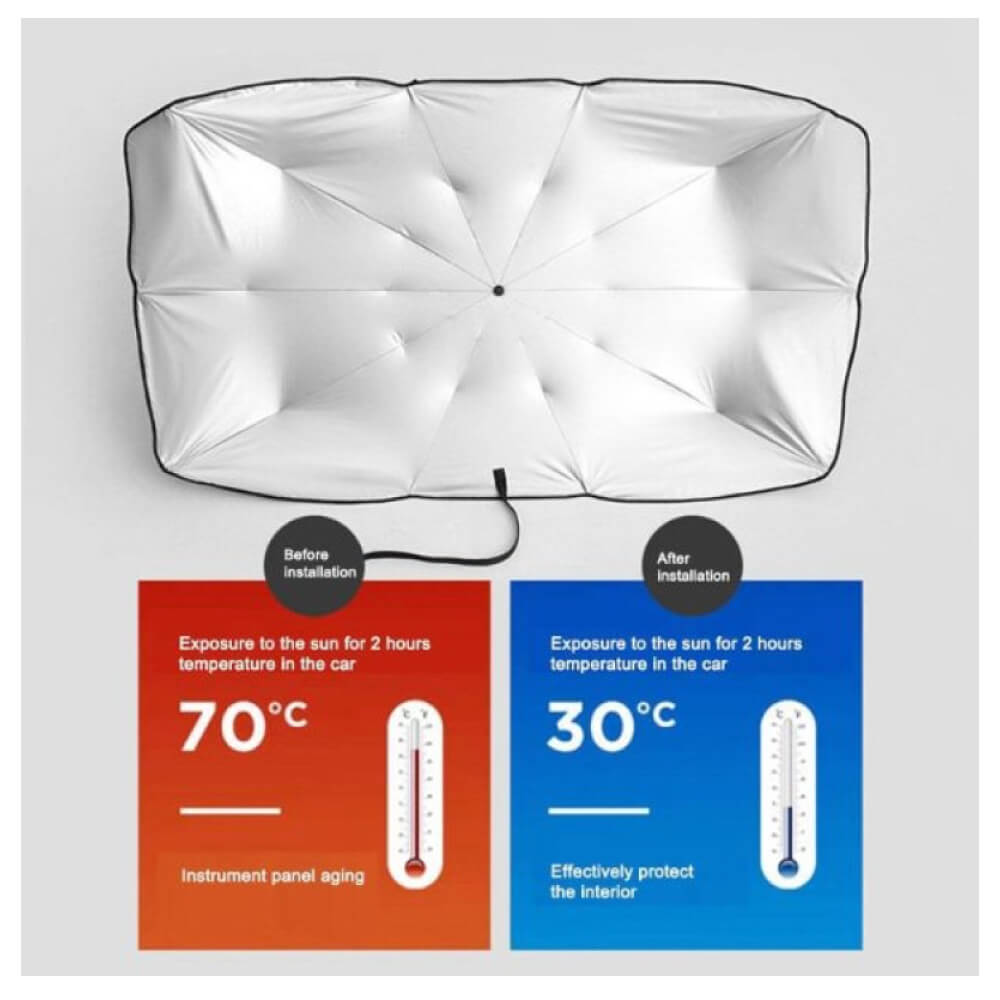 Şemsiye Araba Güneşliği kolayca çıkar ve saniyeler içinde katlanır, böylece hızlı bir şekilde kullanabilirsiniz.